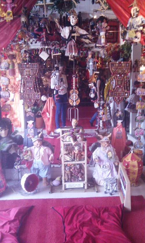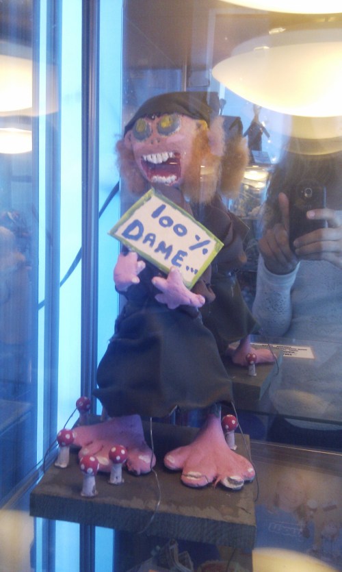 Og der fikk jeg  definitivt lyst til å gå inn, samtidig som jeg ble redd for å bli drept av en gal dukkedame, og ende opp som en mørk ungdomsserie på Midt i Smørøyet. Rommet heter dukkerommet og er fylt med dukker og figurer fra hele verden. Det er stappet fullt av ting som er søtt, harry, dyrt, billig, ødelagt og merkelig. Det gir overhodet ikke mening, har ingen rød tråd og alt er forbudt å røre (kjempelurt på et museum for barn), men kult var det. Jeg likte til og med plastplantene som henger ned fra taket. Se, se: