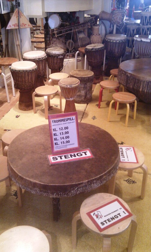 Mens vi gikk rundt og så, og Ida fikk utviklet enorm kompetanse i å fungere som en vegg mellom meg og overvåkningskamera, var det også en omvisning med førsteklassinger. Omviseren valgte motsatt taktikk av vår alles kjære Arne, og var ekstremt positiv til alt barna sa og gjorde. Det var rett og slett kos. Og koseligheten nådde nye høyder da han tok med barna for å ha musikkstund. Museet er nemlig veldig opptatt av musikk. Men kun på visse tidspunkt. Da vi var der var trommene dessverre stengt. Og bordet og to av knakkene.