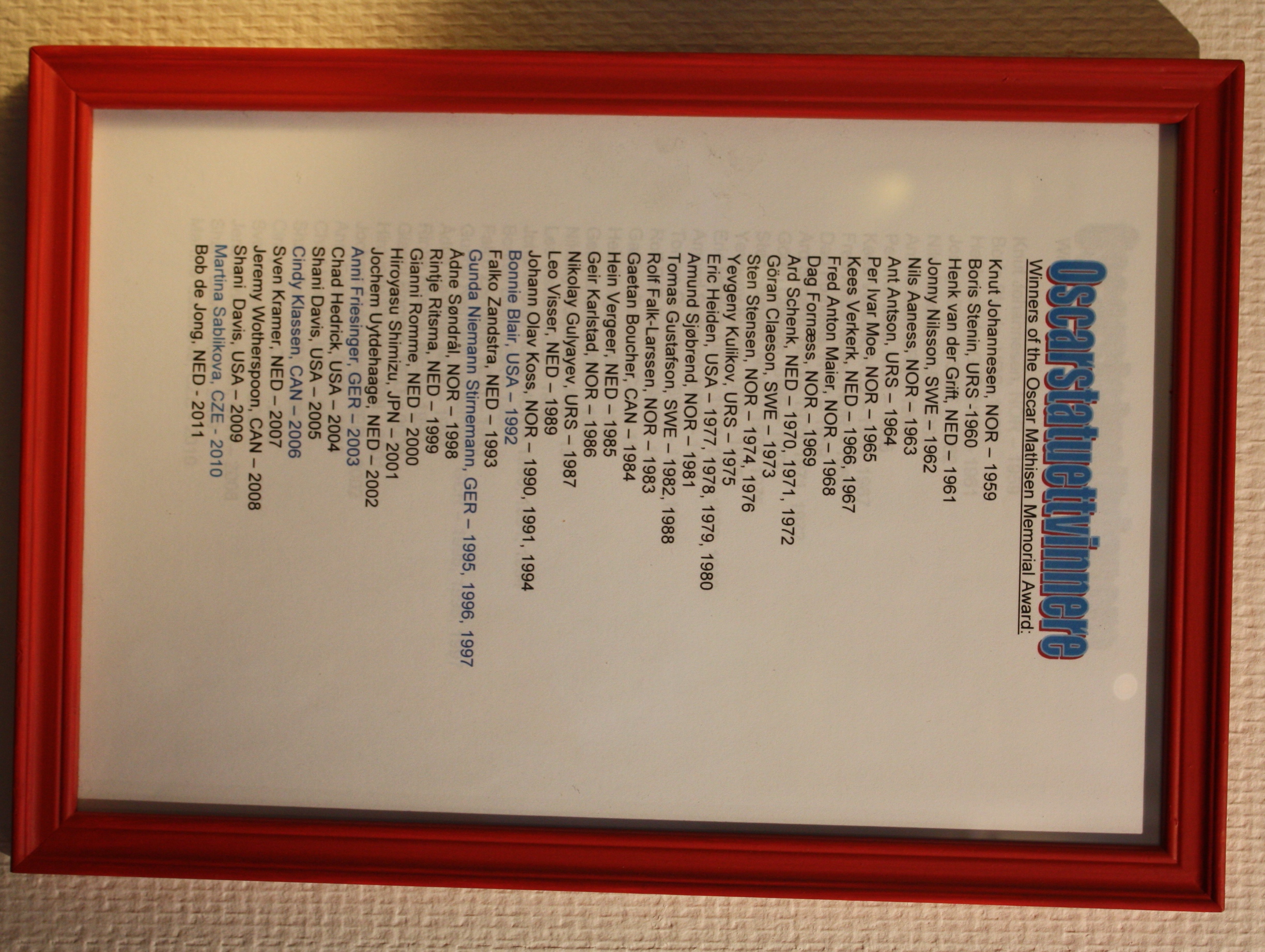 Er det virkelig så mange skøyteløpere som gjorde som Sonja og ble filmstjerner, og attpåtil vant Oscar? Nei, det er selvfølgelig ikke det. Skøytesporten har nemlig en egen pris, kalt opp etter Oscar Mathisen. Personlig synes jeg Mathisenprisen hadde skapt mindre forvirring, men for all del. Det er en hel vegg fylt med bilder av folk som har fått Oscarstatuetten på museet, og de ga et godt bilde av skøytesportens negative utvikling: