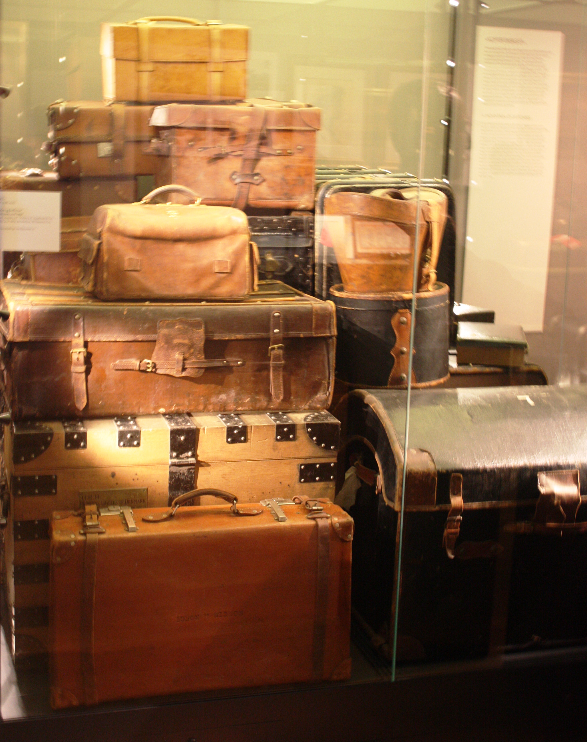 Noen ganger reiser de kongelige. Ja, de reiser faktisk så mye at det er mulig å lage en utstilling om det. Når de reiser så pakker de tingene sine i kofferter, og hvis de har med seg mange kofferter så kan det se slik ut: