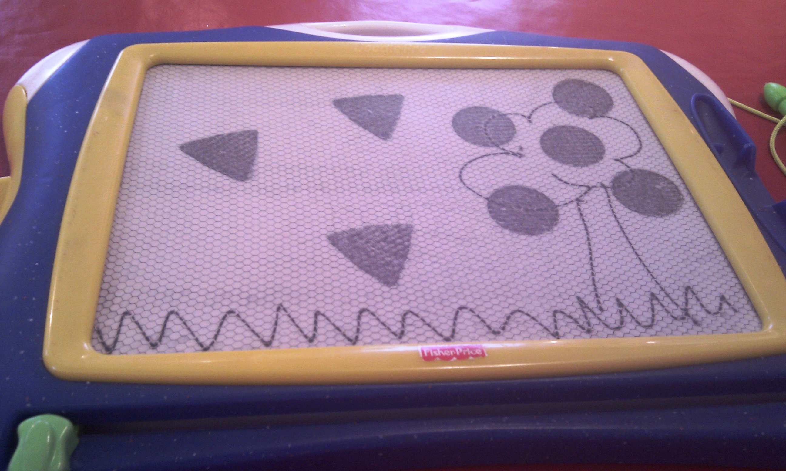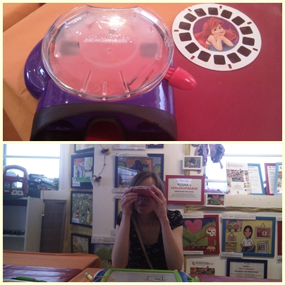 Det første rommet var nede i kjelleren og i de første minuttene trodde vi dette var det eneste museet hadde å by på. Det var et stort rom med et nesten like stort bord, og mange etch a sketch-tegnebrett og sånne kikkerter med eventyrhjul. Så da var det bare å sette igang å tegne og leke, da. I bakgrunnen surret P2, mens vi satt og hvisket at det virket noe overpriset å måtte betale for å tegne i et kjellerrom.