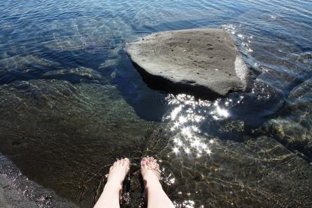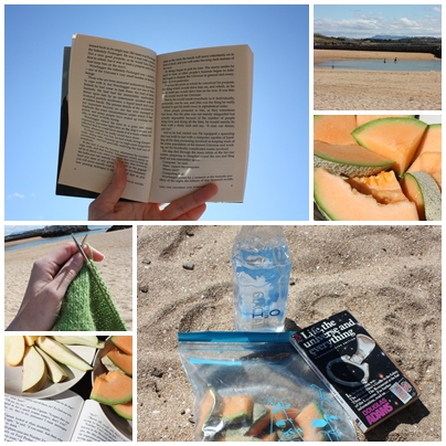 I dag var jeg som dere ser på stranda og leste og strikket. Det var hele 7 grader i skyggen og forholdsvis lite vind, og for islendinger er det mer enn varmt nok til å bade. I sjøen. Og jeg som trodde jeg var tøff når det gjelder bading.
