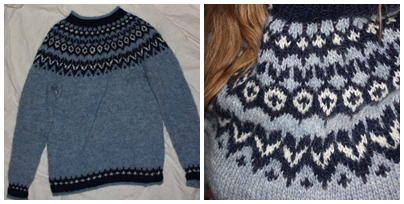 Jeg klarte det! Yeah! Hvis du ser godt etter på det øverste bildet ser du at jeg allerede er i gang med genser nr. 2. Det skal bli en julegave, så mer kan jeg ikke si om den. Og jeg er klar over at det å strikke julegaver i mai gjør meg til en gammel dame, men bare vent til desember! Da kan du angre på at du ikke er litt mer gammeldameaktig selv. Jeg skal le og le av de som stresser rundt, mens jeg sitter der med de ferdige og ekstremt praktiske gavene mine. Mehehe.