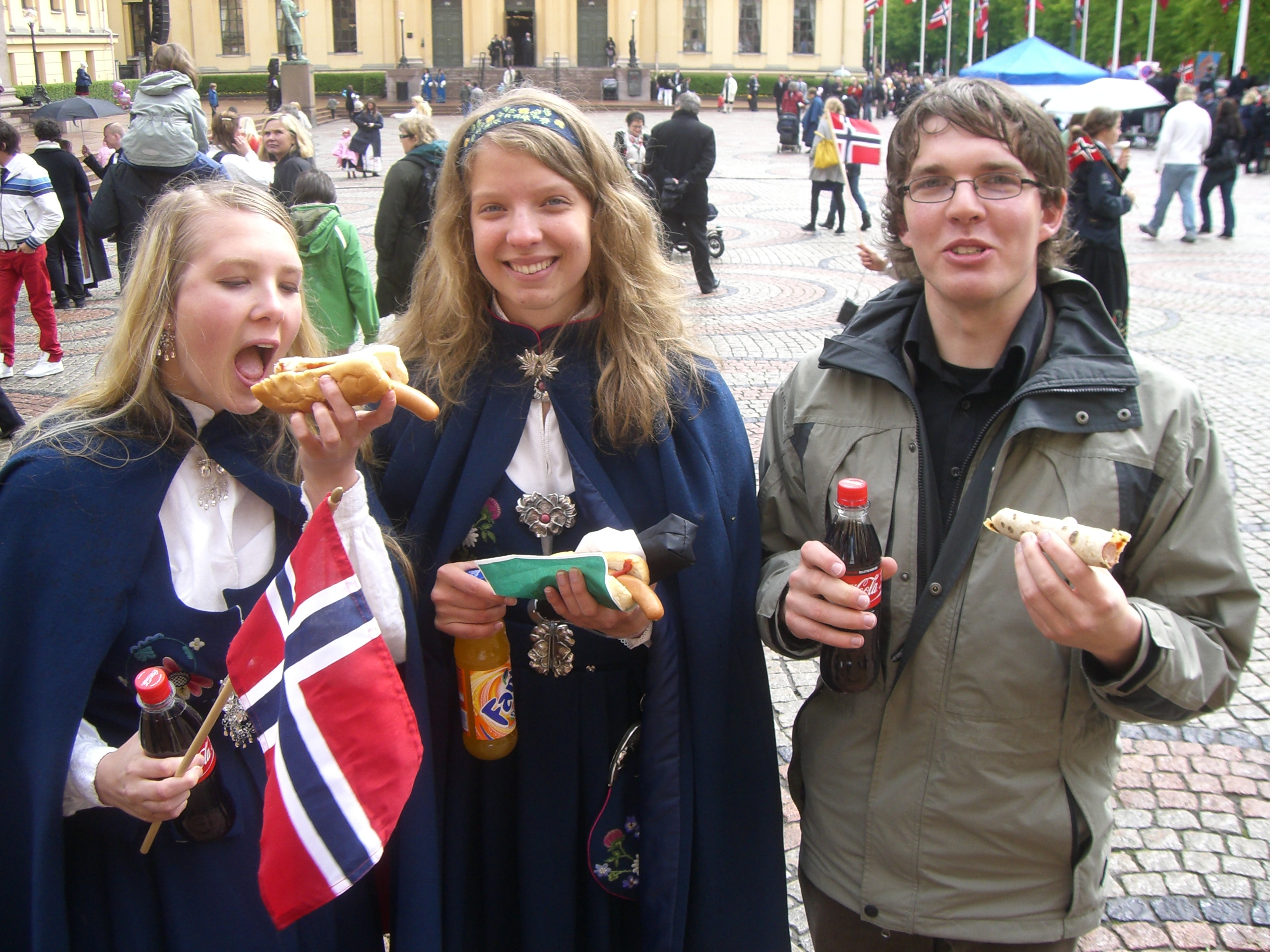 17. mai i Reykjavik ble sannelig riktig så trivelig! Det var sekkeløp, potetløp, kasting på boks, is, pølse, NRK på storskjerm og ikke minst tog med korps. Tog er så stas! Vi fikk to politimenn på motorsykkel til å følge oss så vi kunne stoppe trafikken og vandre hele veien fra Nordisk hus til Domkirken. Korpset var veldig bra og stemningen var på topp med roping og norske flagg hele veien. Etter toget var det opplegg i kirka før det var ambassademottagelse. Det var fancy greier med vin og kanapeer, og nå har jeg sett Vigdís Finnbogadóttir (takk Gunhild). Vet du ikke hvem det er? I 1980 ble hun valgt til president på Island, noe som gjorde hennes til VERDENS FØRSTE KVINNELIGE PRESIDENT. Og ja, det gjør meg kjempekul. Jeg snakket ikke med henne, men vet at hun også liker kanapeer, og ser utrolig flott ut til å være 80 år.